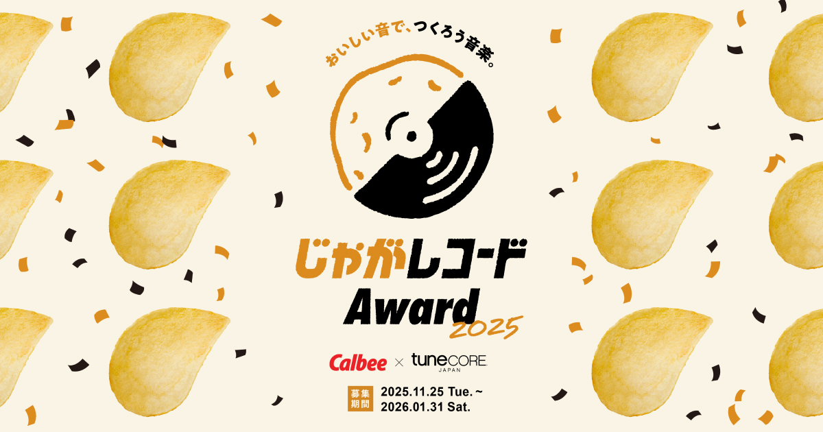 TuneCoreJapanとカルビーがコラボレーションし、カルビー商品の個性豊かな「タベオト」を使った楽曲コンテスト「じゃがレコードアワード2025」を開催。 「じゃがレコード」はカルビー史上初となる音楽レーベルであり、カルビーのスナック…